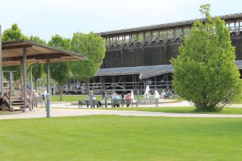 Kurpark an der Obermain- Therme Felskrone am Staffelberg mit Adelgundis-Kapelle im Hintergrund