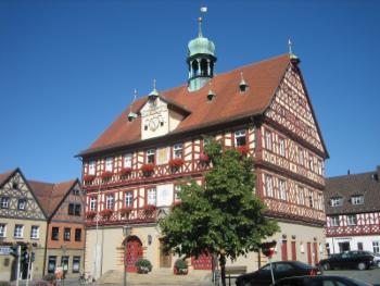 Rathaus Bad Staffelstein, Marktplatz 1 Panoramabild mit Kloster Banz im Hintergrund